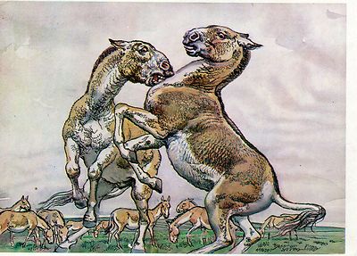 RUSSIAN ART postcard of ONAGER HORSES critically endandered