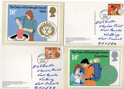 Title (ebay affiliate link): 4 POST OFFICE PHQ postcards of THE DUKE OF EDINBURGH'S AWARD 1981 FDI