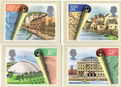 4 POST OFFICE PHQ postcards of URBAN RENEWAL 1984