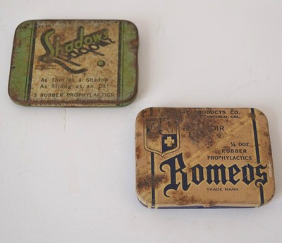 Title (ebay affiliate link): Two Old Condom Tins Including Rare Romeos and Shadows - fair condition