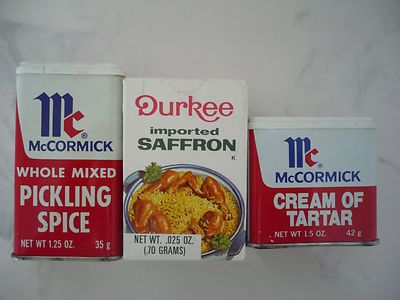 Title (ebay affiliate link): Lot of 3 EUC Vintage McCormick & Durkee Pickling Saffron Spice Tins Box 1970's