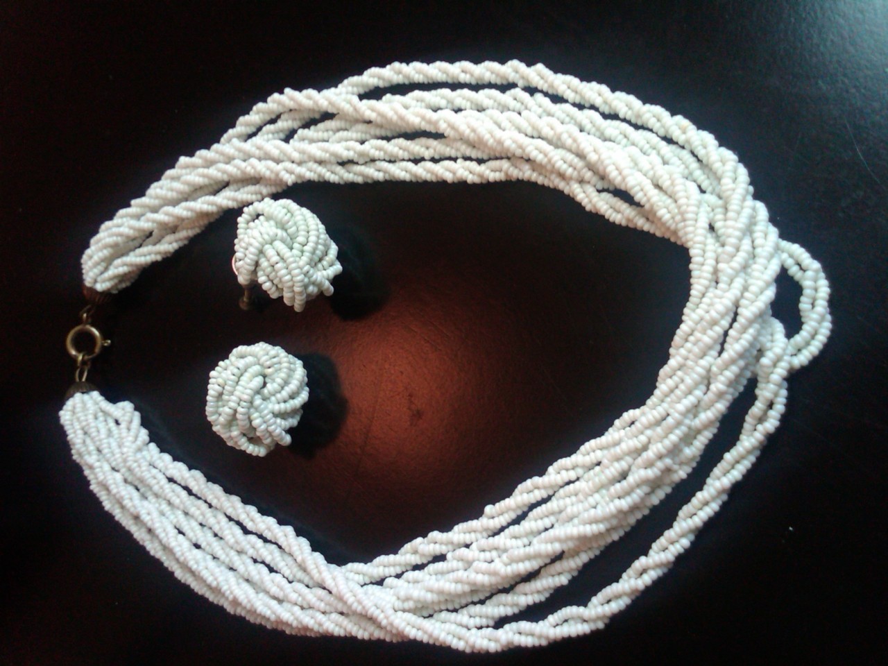 VINTAGE MILK GLASS BEADED NECKLACE SET