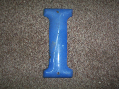 VINTAGE PORCELAIN LETTER SIGN " I " 10"