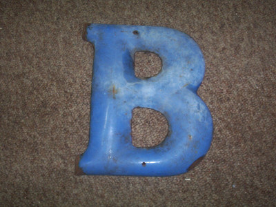 VINTAGE PORCELAIN LETTER SIGN " B " 10"