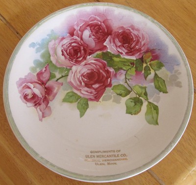 Title (ebay affiliate link): Lovely Vtg Roses Advertising Plate Ulen Mercantile Co, MN 9"