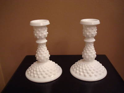 Vintage Fenton White Milk Glass Hobnail Candle Holders