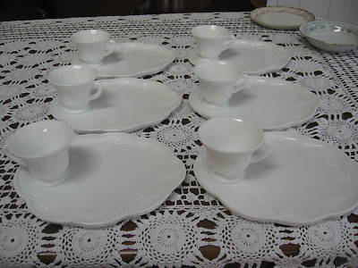 12 PC COLONY HARVEST GRAPE MILK GLASS SNACK SET Indiana