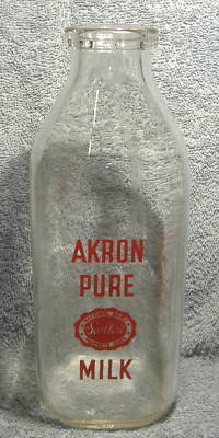 AKRON PURE MILK SEALTEST DAIRY GLASS MILK BOTTLE 1 QT