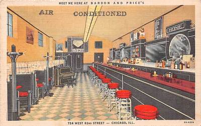 Chicago IL Advertising Linen Postcard Bardon & Price Diner Interior Piano xb9433