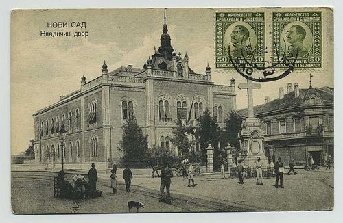 1913 Novi Sad Serbia Postcard Greeting Stamps Cancel Postal History xb9436