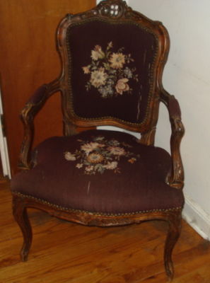 ANTIQUE FRENCH NEEDLEPOINT CHAIR WOOD CARVED