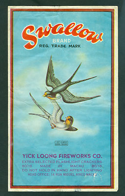 vintage large Swallow firecracker label 1960s Macau