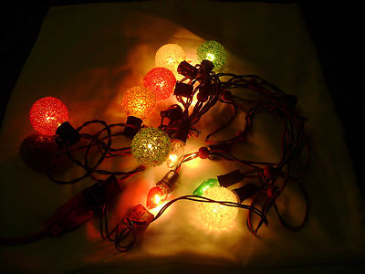 Title (ebay affiliate link): C7 Vintage light strings(2) with 8 snowball lights, red wood balls, all working