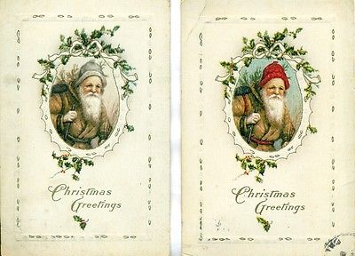 2 VINTAGE No.S684 POSTCARDS WITH SAME SANTA WEARING DIFFERENT COLOR HATS ETC.