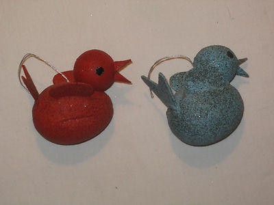 2 Vintage Cardboard Black Mica Glitter Bird Candy Container Christmas Ornament