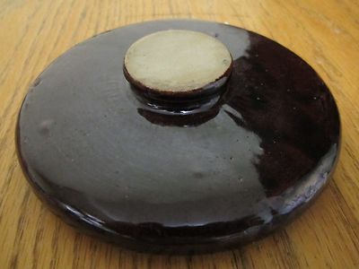 Title (ebay affiliate link): Red Wing Pottery Cover for Bean Pot Crock Albany Glaze 4 3/8" Diameter