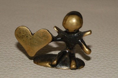 VINTAGE WALTER BOSSE VIENNA BRONZE ANGEL WITH HEART AUSTRIA c1950