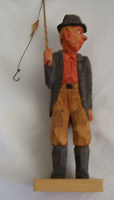 Title (ebay affiliate link): VINTAGE SWEDISH HAND CARVED WOODEN FIGURE 9" FISHERMAN WITH FISHING POLE 1953?