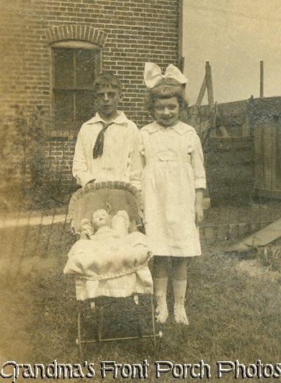 Children Doll Antique Wicker Carriage Hair Bow~Photo