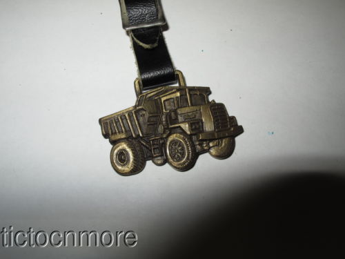 VINTAGE FIGURAL MACK TRUCKS SEMI ADVERTISING POCKET WATCH FOB & LEATHER STRAP