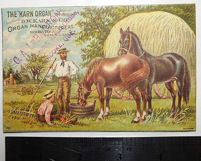 Title (ebay affiliate link): KARN ORGAN manufacturers Woodstock Ontario Victorian Trade Card horses farming