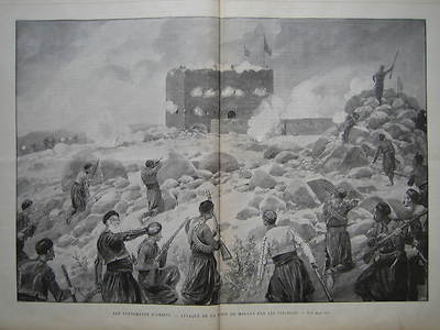 OLD PRINT 1897 LA CANEE GREECE GRECE TURKEY TURQUIE WAR CRETE MALAXA TOWER