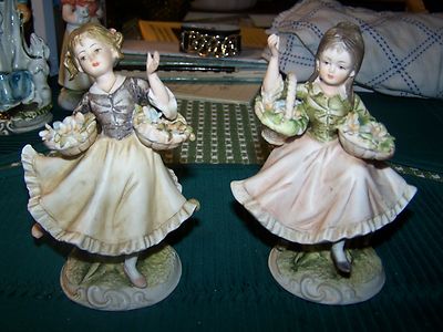 Title (ebay affiliate link): VINTAGE LEFTON LOT OF 2 GIRLS WITH FLOWER BASKETS FIGURINES KW118A &KW118B MINT