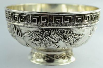 Title (ebay affiliate link): Chinese Old Decorated Pure Handwork Tibet Silver Carved Dragon&Phoenix Bowl #v46