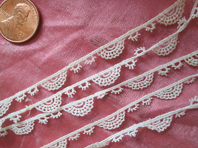 Tiny irish crochet point de gaze lace trim antique vintage dolls 2 yards + 3"