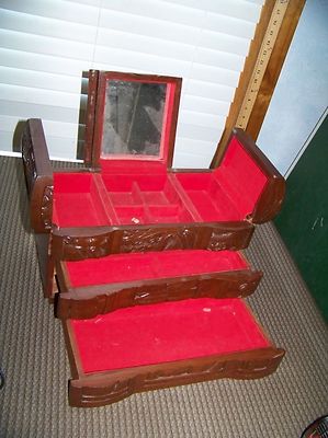 Vintage Wood Narra Jewelry Box w/ Mirror and Drawers