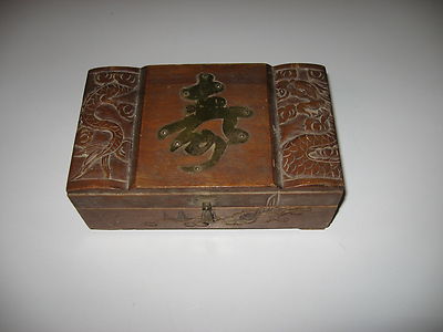 Title (ebay affiliate link): OLD WOOD CARVED JEWLERY BOX-DRAGON-ORIENTAL EMBLEM-MIRROR-OLD RED VELVET INSIDE