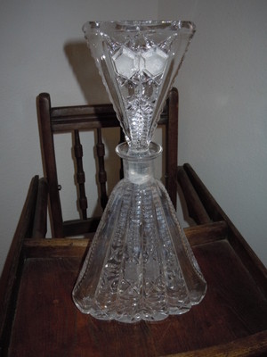 Vintage Cut Glass Decanter - Awesome Fan Shape!