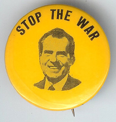 Title (ebay affiliate link): Classic STOP THE WAR Smiling NIXON anti - Viet Nam War Pin!