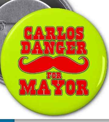ANTHONY WEINER NEW YORK CARLOS DANGER FOR MAYOR MUSTACHE PIN BUTTON POLITICAL