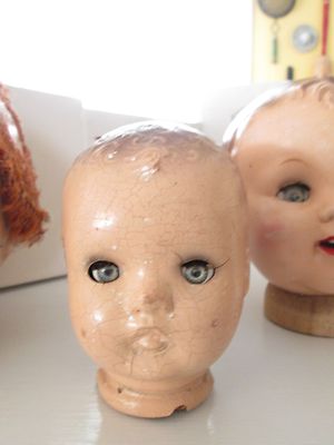 4 3/4" Antique Composition Doll Head With Sleep Eyes