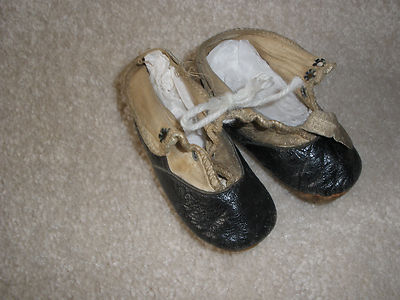 Title (ebay affiliate link): Antique Doll Shoes--Leather tie shoes with tongue/linen lining