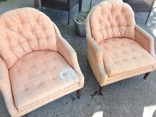 Title (ebay affiliate link): Pair Vintage Antique Wood Upholstered Fabric Chairs Need Work