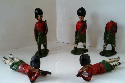 DIE CAST LEAD WW1 OR WW2 TOY SCOTTISH SOLDIERS X 5