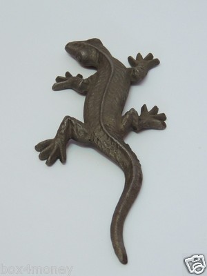 Rare Vintage Art Solid Heavy Iron Cast Metal Toy Lizard Figure Wall Decor Statue