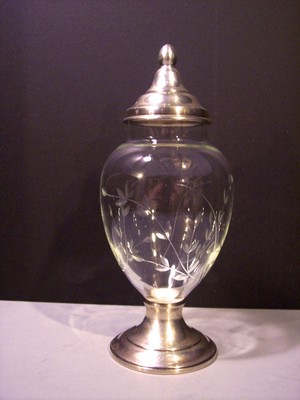 Title (ebay affiliate link): Vintage or antique blown glass and sterling silver covered candy dish