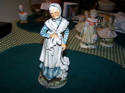 OLD LADY WITH RABBIT AND DOG PORCELAIN FIGURINE