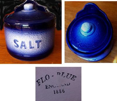 Title (ebay affiliate link): ANTIQUE FLO BLUE ENGLAND BLUE & WHITE LIDDED STONEWARE WALL SALT BOX CROCK