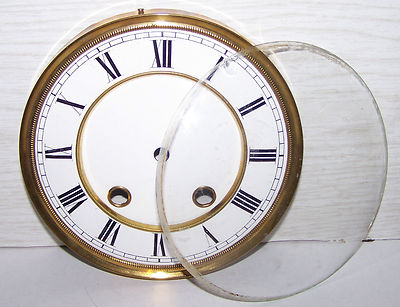 ANTIQUE PORCELAIN & BRASS ROMAN NUMERAL 5 3/4" CLOCK DIAL & BEZEL