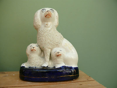 SUPERB 19thc STAFFORDSHIRE POODLE WITH PUPS FIGURINE C.1850