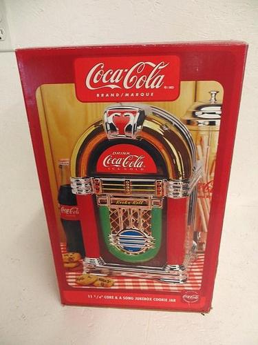 Title (ebay affiliate link): Nice Coca Cola Coke & A Song Juke Box Cookie Jar With Original Box