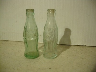 Title (ebay affiliate link): PAIR VTG MINIATURE GLASS COCA COLA BOTTLES COKE ONE CLEAR ONE GREEN