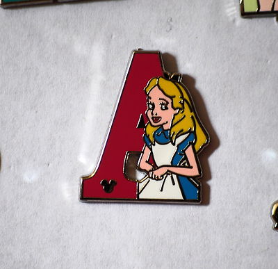 Title (ebay affiliate link): DISNEY HIDDEN MICKEY 2011 ALPHABET LETTER A ALICE PIN