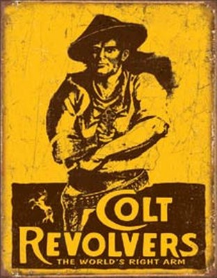 COLT REVOLVER Antique Vintage Barn Find Look Western Pistol Gun Tin Metal Sign