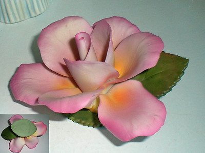 CAPODIMONTE NAPOLEON PINK OPEN ROSE FLOWER FIGURINE