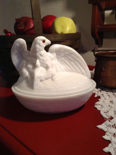 westmoreland milk glass eagle nest candy dish bowl